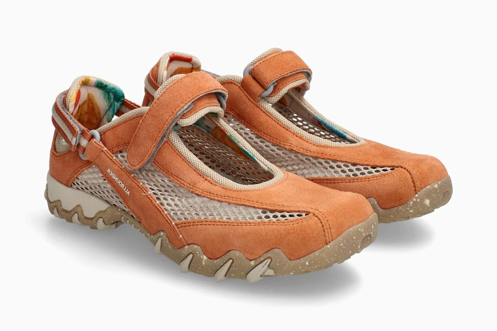 - Adjustable velcro straps, one around the back of the heel and the other over instep