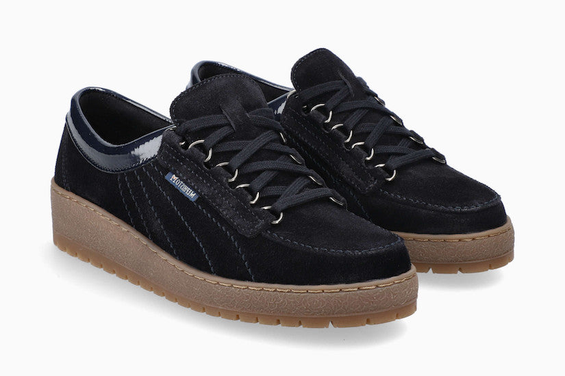 MEPHISTO LADY, BLUE VELOUR/PATENT TRIM